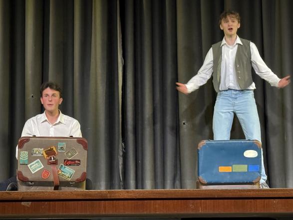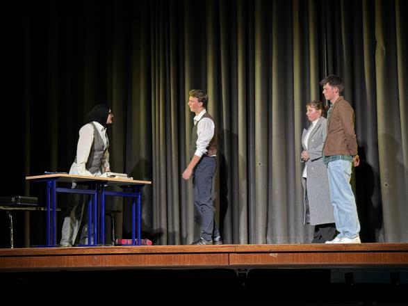Die Geschichte der Vertreibung: Mit diesem zeitlosen und zugleich hochaktuellen Thema setzten sich die Schülerinnen und Schüler im Theaterprojektkurs der Q2 auseinander. In einer Mischung aus Text, Spiel und Atmosphäre beleuchteten sie dabei unterschiedliche Facetten von Flucht, Verlust und Neuanfang. Dabei verband die Inszenierung historische Erfahrungen mit gegenwärtigen Perspektiven und lud das Publikum dazu ein, über die Dimensionen von „Vertreibung“ nachzudenken.