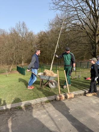 Besonders schön war, dass auch Schülerinnen und Schüler unserer Schule – Mats, Felix, Sidney, Sofia, Dilay, Wiam und Ana aus der Klasse 7.1 – tatkräftig mit anpackten und beim Pflanzen der jungen Bäume halfen.