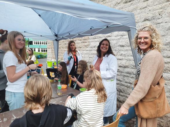 Am Freitag, den 12. Mai hatten Schülerinnen und Schüler die Möglichkeit außerhalb von Unterricht an vielfältigen naturwissenschaftlichen Stationen nach Herzens Lust zu forschen, rätselhaften Phänomenen auf die Spur zu kommen und kleine Wunder unserer Welt zu entdecken. Aktionen wie der Spaghettiturm, die Farbenzauberei und „Maden malen“ sowie exotische Tiere boten ein abwechslungsreiches Programm, bei dem auch der gesellige Teil nicht zu kurz kam.