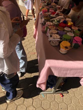 Unter dem Motto „Gemeinsam feiern, gemeinsam wir“ erwarteten die Besucherinnen und Besucher vom Mensavorplatz, über die Haupttreppe bis zu den Sporthallen mehr als 40 Stände. Bei kurzweiliger und ausgelassener Stimmung konnte gebastelt, genascht, gegessen, erzählt und die eigene Geschicklichkeit auf die Probe gestellt werden. Zahlreiche Gäste folgten der Einladung, so dass das fröhliche Fest bis zum Schluss gut besucht war und der Förderverein der Erich-Fried-Gesamtschule sich über die Einnahmen freuen kann.