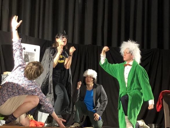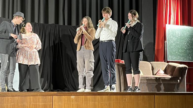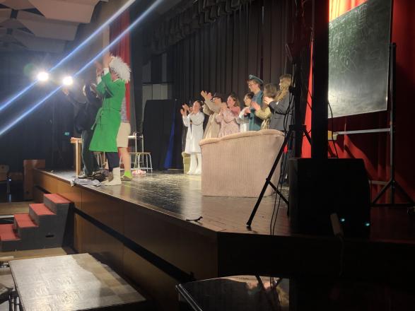 Die beeindruckende Textsicherheit und mitreißende Spielfreude der Schülerinnen und Schüler auf der Bühne zog das Publikum in ihren Bann. Dabei sorgten die gelungenen Tanz- und Gesangseinlagen für viel Heiterkeit, ohne die Ernsthaftigkeit des Stücks aus dem Blick zu verlieren. Zum großen Vergnügen aller gab’s dann nach dem tosenden Applaus noch die eingeforderte Zugabe.