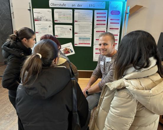 Für die Eltern boten sich zahlreiche Gelegenheiten, um viele Fragen zu möglichen Schullaufbahnen und Abschlussmöglichkeiten an der EFG-Gesamtschule zu klären. Zudem erhielten sie einen unmittelbaren Einblick in den Unterrichtsbetrieb einer Ganztagsschule.