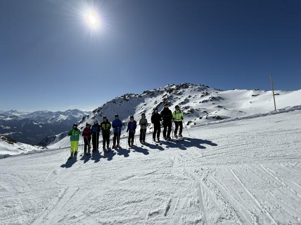 Die Skikurse waren hervorragend organisiert und jeder fand seinen Platz. Die Anfänger gewöhnten sich nach und nach an die Skier, während die Fortgeschrittenen immer sicherer die steileren Pisten eroberten. Es war beeindruckend, wie schnell sich jeder in seiner Gruppe steigerte und immer mutiger wurde. In den Pausen wurde dann ausgiebig über die besten Stürze und die größten Erfolge gefachsimpelt, begleitet von vielen Lachern, lustigen Anekdoten und ausgeteilten "Vouchies".