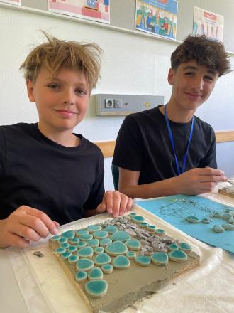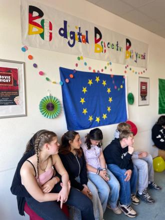 We met Ute the artist at 8.30 and she showed us how to make a mosaic tile using small pieces of glass and ceramic. The theme of the mosaic tiles was EU values like equality and human rights. It was a very creative and productive day. The finished tiles looked great. Everyone was very tired but happy with the results. Before we left for home we had free time to play on the sports field. That evening we returned to the modules for our movie night.