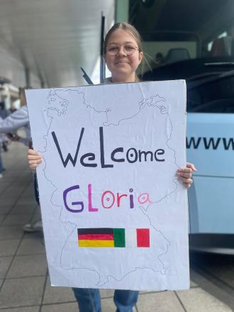 We met at 8.30 am and finished our posters about Wuppertal and the region. The bus came at 11 am and took us to the airport where we welcomed our Italian guests with posters of their names. Back at the school we gave our presentations about Wuppertal. Before we ate snacks from the buffet, Frau Flowerday dropped by to welcome our guests from Sassuolo. At 3 pm our parents came to pick us up and take us home.