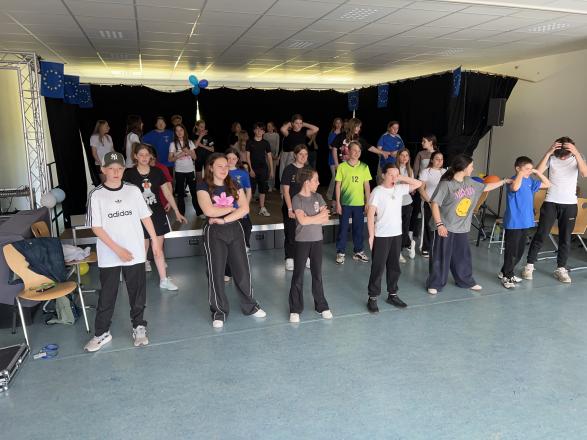 Today we had three workshops. Firstly we started with a sports workshop where we played ball games. In the second workshop we had to take a photo of part of our face which we do not like …. this was not so easy! In the third workshop we learnt a dance choreography for the party on Friday evening.
