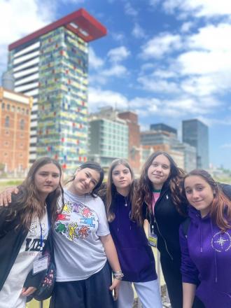 We all met at 9 am at the piano in the main train station. We then took the train to Düsseldorf and the bus to the Medienhafen. We did a walking tour of the incredible architecture in the harbour area and took lots of selfies as part of our project. At the end of the tour we went up the Rheinturm which gave us a fantastic view of the city. We had the afternoon free for shopping.